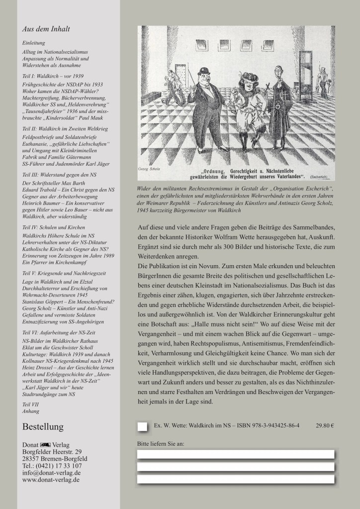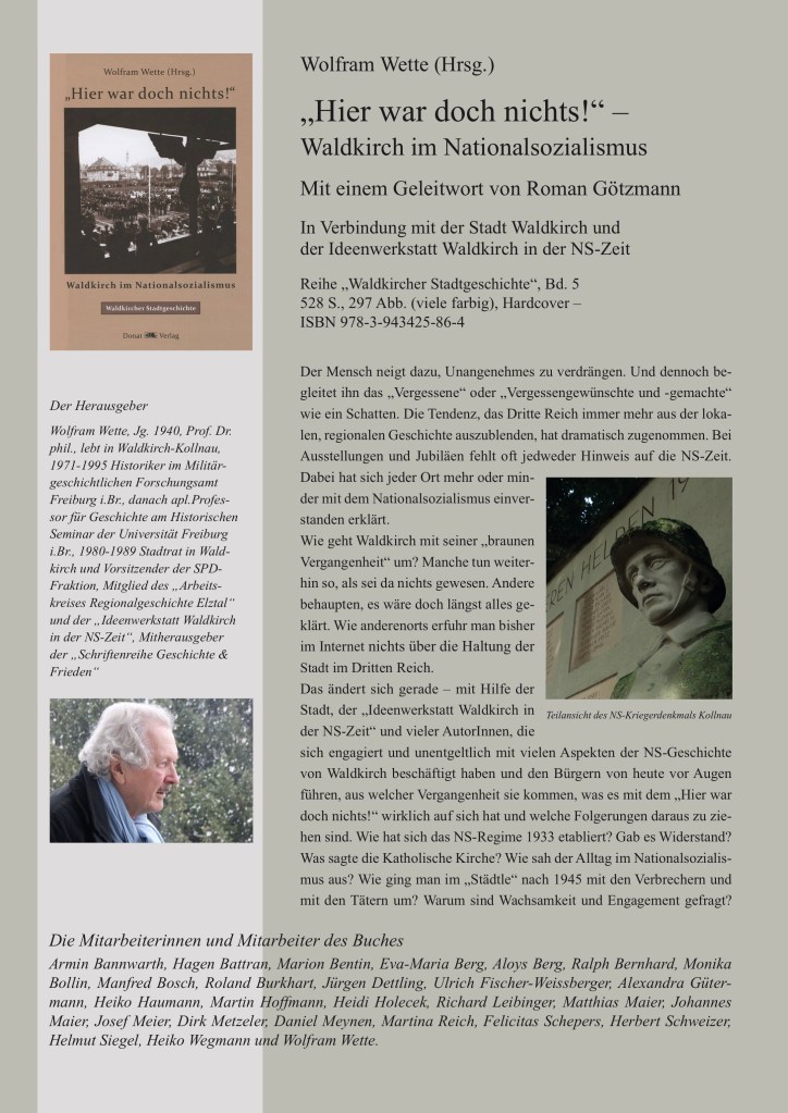 Auf Initiative der Ideenwerkstatt Waldkirch entstand dieses lesenswerte Buch über die Geschichte Waldkirchs im Nationalsozialismus und über die Aufarbeitung dieser Zeit in Waldkirch.