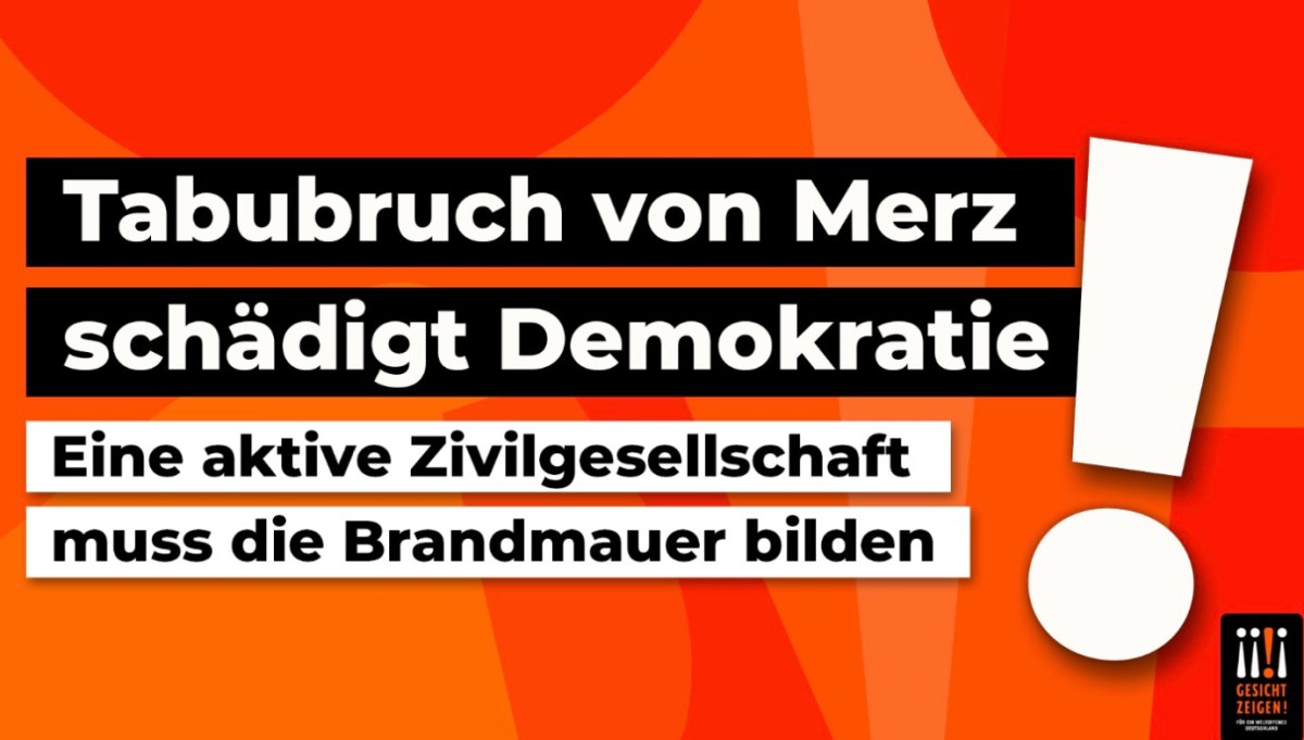 Kanzlerkandidat Friedrich Merz hat ohne Not die CDU-CSU-Fraktion gemeinsam mit der AfD abstimmen lassen. So ebnet er dieser den Weg zur parlamentarischen Mitsprache. Ebenfalls macht er dadurch Hass auf Migranten salonfähig und täuscht Handlungsfähigkeit vor.