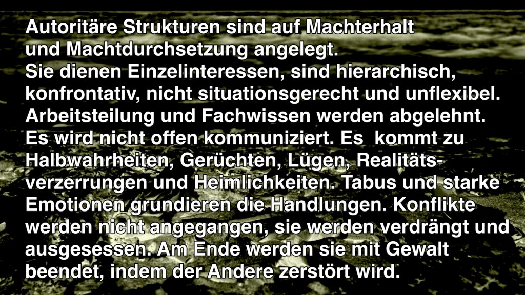 Kipppunkte verstellen, als von einer einseitigen Perspektive in die andere fallend, den weiten Blick auf die Wirklichkeit, sie verhindern Diskurse und den Austausch, die zur Lösung von Problemen führen können. Wir müssen Situationen beschreiben, die jeweiligen Perspektiven einnehmen – von Realem erzählen.