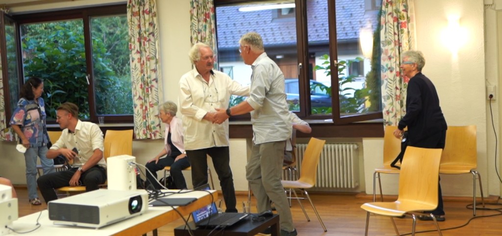 Bei einem Besuch von Günter und Margot Fontheim in Simonswald führten wir ein bemerkenswertes Gespräch. Herr Fontheim erzählt von seinem Leben im Versteck in einer Laubenkolonie als Untergetauchter im zerbombten Berlin, er und Heinz Drossel äußern sich im Anschluss daran zu Tätern und Zivilcourage in der NS-Zeit.