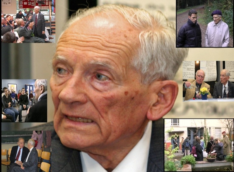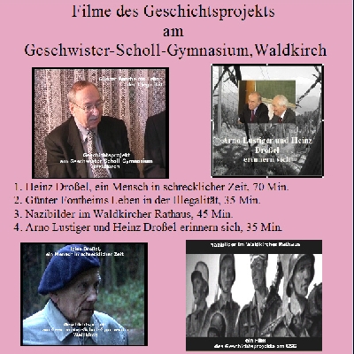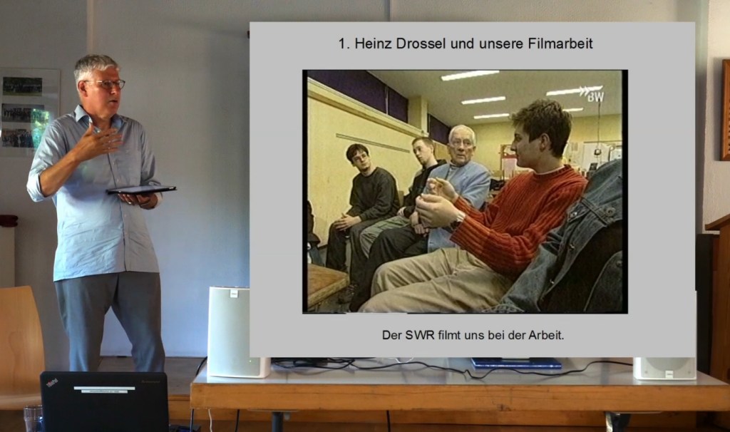 Heinz Drossel an seinem 90. Geburtstag am GSG in Waldkirch, mit Mirko beim Dreh im Bruckwald 2001, in einer Klasse am GSG, mit dem Militärhistoriker Prof. Manfred Messerschmidt, mit Arno Lustiger (bei Veranstaltungen am GSG, beim Dreh in Berlin Tempelhof 2001