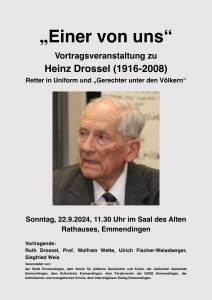 Auf einer Veranstaltung zu meiner Verabschiedung in den Ruhestand hielt ich den folgenden Vortrag. Es ging mir darum zu zeigen, dass es wichtig ist im Geschichtsunterricht nicht nur auf das Wissen um wichtige Sachverhalte und historische Phänomene abzuheben, sondern ein tätiges Mitgefühl zu entwickeln und dieses auch an historischen Persönlichkeiten wie Heinz Drossel zu zeigen.